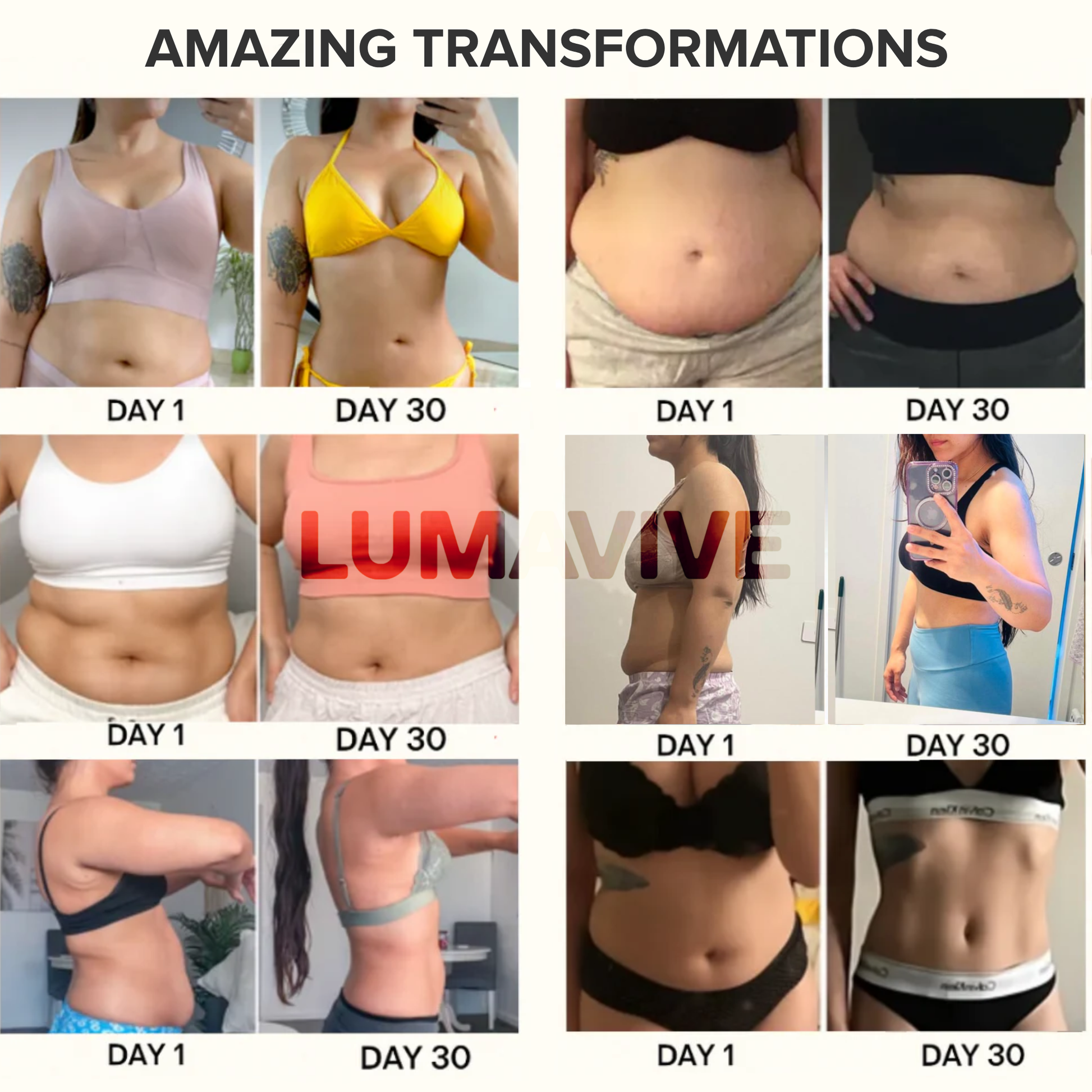 Clinically Proven, NASA-inspired Tech: Red & Near-Infrared wavelengths penetrate the skin, stimulate collagen, boost circulation, and shrink fat cells. No pain, no downtime - just firmer, younger-looking skin.